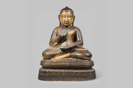 A-BURMESE-LACQUERED-AND-GILT-MARBLE-FIGURE-OF-BUDDHA-SHAKYAMUNI-£1800