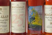 A collection of Macallan whisky bottles - Macallan 25 Year Old, Macallan Privaet Eye, Macallan 18 Year Old